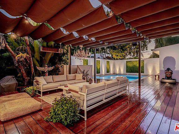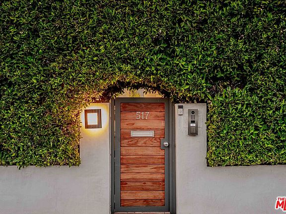 Enter beyond the private gates into a reimagined contemporary retreat where refined design meets everyday functionality. Set on an ultra private, hedged and gated, light and bright five bedroom, four bath residence offers seamless indoor-outdoor living with expansive glass sliders opening to a lush entertainer's backyard, complete with a sparkling pool, spa, and multiple lounge areas including wide open grassy yard in front of the home. Inside, light-filled interiors showcase a spacious open layout, anchored by a formal dining area and a custom chef's kitchen featuring marble countertops and top-of-the-line Miele appliances. Two bedrooms and a full bath on the main floor provide flexibility for guests or office space. The upper level hosts a vaulted-ceiling primary suite with spa bath and walk-in closet, plus a second en-suite bedroom. A beautifully finished detached ADU with its own bed and bath offers the perfect solution for guests, workspace, or rental potential. It currently contains a recording studio, perfect for musician or podcaster. Covered off-street parking and curated landscaping round out this thoughtfully updated home in one of LA's most desirable walking neighborhoods. Luxury, comfort, and architectural charm, 517 N Laurel is a standout offering in the heart of Beverly Grove.