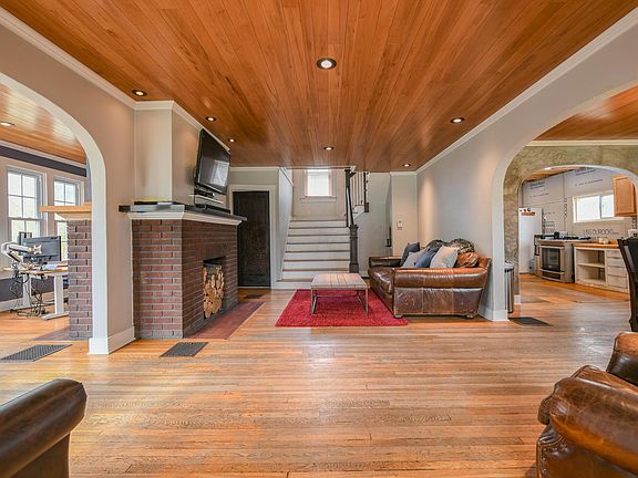 This beautiful home is a must see. Flanked with the original hard wood floors, the first floor features a restored double fireplace, tongue & groove plank ceilings, & built-ins.A large dining room is open to both the living room & kitchen. It's full functioning kitchen is ready for the buyer's personal touches. Electric & plumbing are run to both sides of the kitchen to suit the buyers needs. Upstairs houses 3 bedrooms with large step-in closets & the full bath. The walk-up attic has been converted to a multi-purpose room with closets & drawers. This space is a gamers paradise with vented built-ins for gaming consoles so they stay cool. Outside the yard is fenced for privacy. So close to downtown and all it offers. This is a must see if you love character and charm!