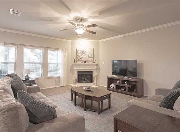 Beautiful home in Mistletoe Hill near shopping, parks and schools. Home features 4 bedrooms, 2.5 baths, a game room and office. The kitchen is open to dining and living for special occasions. Complete details including rounded corners, crown molding and 2 in faux wood blinds. Large back yard that backs up to greenbelt. Perfect set up for future pool. Lots of space and storage. Community pool and park. This is a must see!
