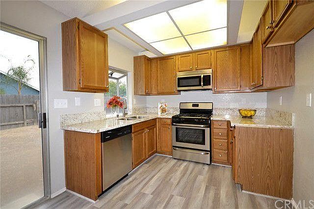 Newly updated home 1045 sq ft with 3 bedrooms, 2 bathrooms and a 2 car garage w/ direct access, is a MUST SEE ** This home features: Spacious Living Room w/ brick fireplace,Open Kitchen w/ gorgeous Granite Counter tops & NEW stainless steel Kitchen Appliances, and a dining area off the kitchen. Fresh-New Interior Paint, and new laminate wood floors throughout and new carpet in the bedrooms. There is a master bedroom and bathroom that has new quartz counter tops and new fixtures. The hall bathroom is a full bathroom with shower/tub, new quartz counter top and new fixtures. The back yard is very open and spacious.