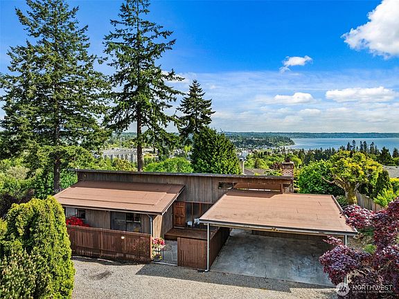 First time on the market, this custom built, 1968 mid-century modern design will intrigue the enthusiasts. Enjoy panoramic views from Mt. Rainier to Puget Sound. This home offers classic details of an architectural era gone by such as vaulted, beamed/wood ceilings, floor to ceiling windows, and screened, exposed aggregate front patio. The walk-out basement is complete with wet bar, rec room, fireplace, two bedrooms, full bath and large storage space. Cool off this summer in your private, in-ground swimming pool while entertaining on the expansive patio and large deck above overlooking the yard and views. A truly magnificent property.