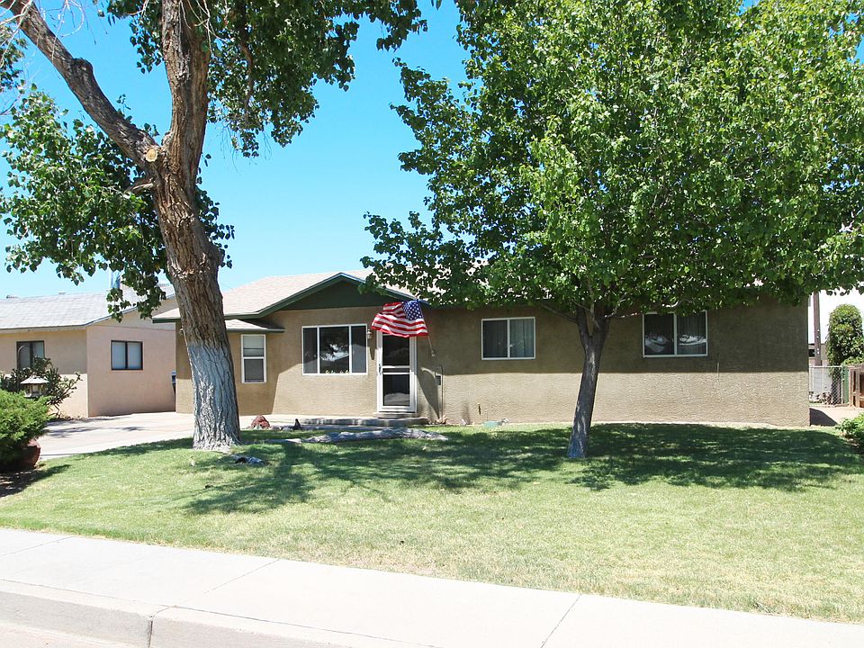 In the heart of Albuquerque's North Valley, you'll find this well cared for and loved gem of a home. The meticulously maintained front and back yards with mature trees and lawns with auto sprinklers are a welcome invitation for guests and entertaining. Offering versatility, the garage has been converted into living space and is currently being used as a spacious guest bedroom with walk-in closet. It could be used as another living space, office, exercise or hobby room, or whatever else your imagination allows. The front windows were replaced at some point and are thermal-double pane. The rest of the windows are original. The kitchen and nook area is simply adorable, with added cabinet and counter space. Stucco was redone on entire exterior in early 2023.