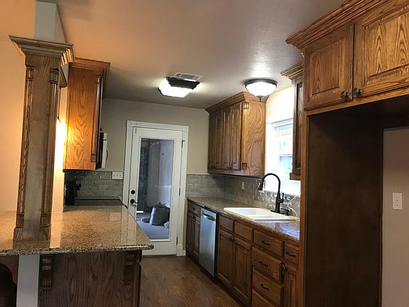 Nice stainless steel appliances. Quiet neighborhood. 3 ovens. Washer/dryer included. Updated bathrooms. Laminate, carpet, tile. Granite countertops. Extra storage in back yard. Fenced.