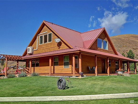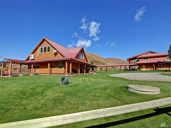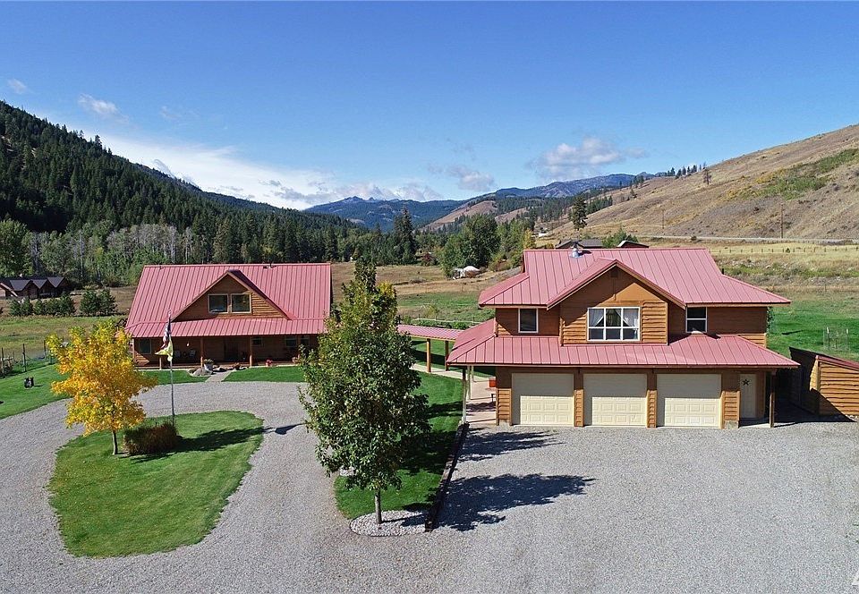 Equestrians dream! 10.88 acres, 2700 sq ft 2 story home + 1050 sq ft guest quarter over 3 car garage. Radiant floor heat, propane fireplace, S/S appliances w/Viking range, spacious dining room, breakfast bar, sun room and master bd w/full bath on main floor. Upstairs:1 bedroom, bonus rm and office/den area. Guest quarters:2 bd, full bath and large covered deck. 22kw whole house generator. Barn:3 stalls, hay loft, tack room, insulated shop. Irrigated, fenced pastures, borders State and USFS land.