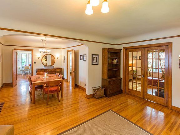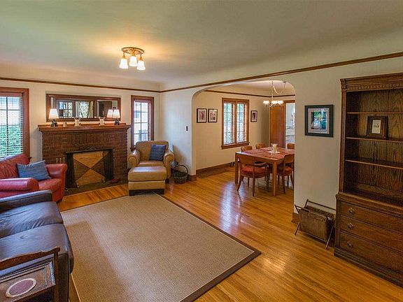 Charming! In a desirable, quiet location. Close to parks, restaurants and services. Large formal living and dining rooms with picture windows. Hardwood floors, gumwood doors and trim, 2 bedrooms, 1 bath. Many updates; electrical through entire house upgraded. New paint and light fixtures inside and out. New sink and floor in bath, new refrigerator and stove. Basement has outside entrance. Cement porches and walkways. Excellent home and well maintained!!