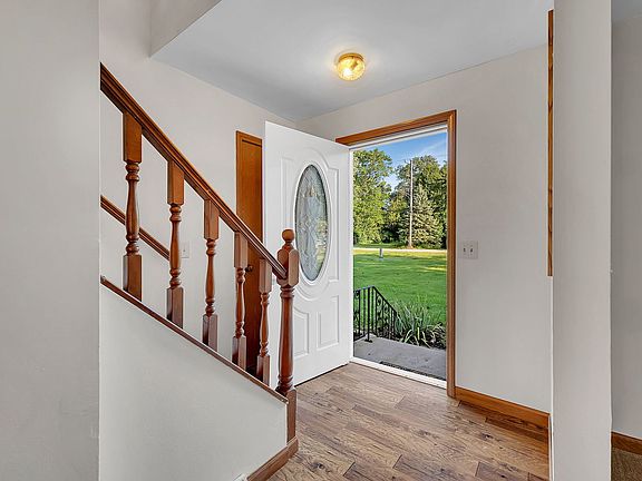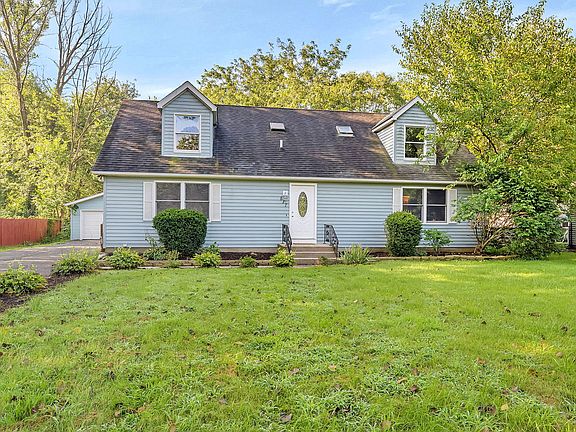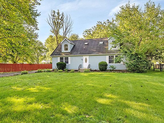 Welcome to this charming Cape Cod-style home situated on a spacious 3/4-acre lot. This beautiful property offers five large bedrooms and three full baths, including a convenient first-floor master suite with a walk-in closet and private bath. An additional bedroom and separate full bath are also located on the main floor. Upstairs, you'll find three more generously sized bedrooms, all with new carpet and fresh paint, sharing a third full bath. The home boasts a huge living room, perfect for gatherings, and a well-appointed kitchen with ample space for all your culinary needs. Step outside to enjoy the expansive 40x16 back deck, ideal for entertaining or simply relaxing in the peaceful surroundings. A massive 26x24 two-car garage and a large driveway provide plenty of parking and storage space. Freshly painted throughout and move-in ready, this home offers both comfort and style in a serene setting. Don't miss out on this incredible opportunity! Seller willing to offer an appliance credit of up to 5k!!!