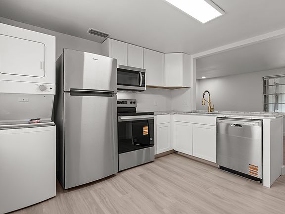 Enjoy brand-new stainless steel appliances, including a refrigerator, stove/oven, dishwasher, microwave, and a stackable washer and dryer for your convenience. The kitchen boasts new cabinetry, granite countertops, and modern fixtures, combining both function and elegance.