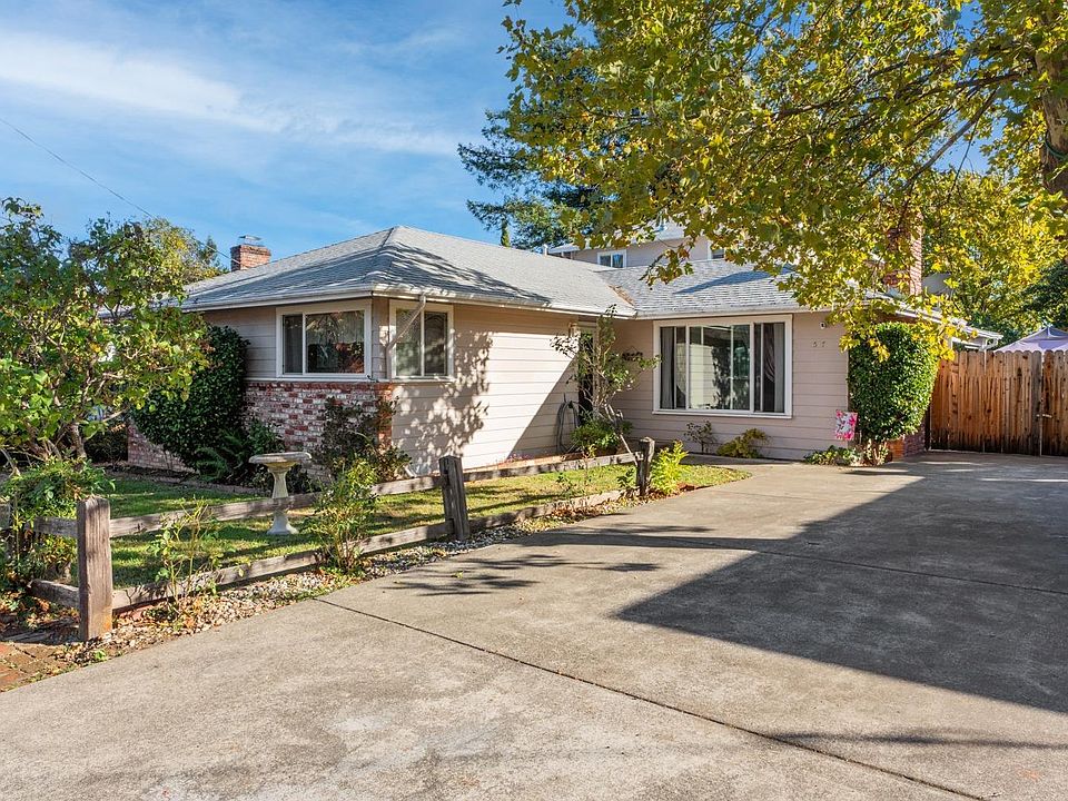 Nestled near the end of West Mill Street, this beautifully situated home offers both convenience and privacy. Inside, the living room is anchored by a charming masonry wood-burning fireplace, creating a cozy space that's perfect for gatherings. The home boasts a formal dining room and a generously sized kitchen with a bright breakfast nook, ideal for family meals or morning coffee. The ground floor includes two bedrooms, one currently used as a home office, along with a full bathroom for added convenience. The spacious second floor primary suite features a private balcony overlooking a lush, secluded backyard, a perfect retreat. Outside, there's ample parking for an RV, plus a covered patio perfect for outdoor entertainment. Completing this home is a two-car garage, offering even more storage and versatility. Discover comfort, space, and an unbeatable location, your dream home awaits!
