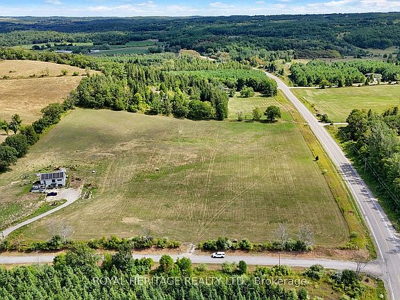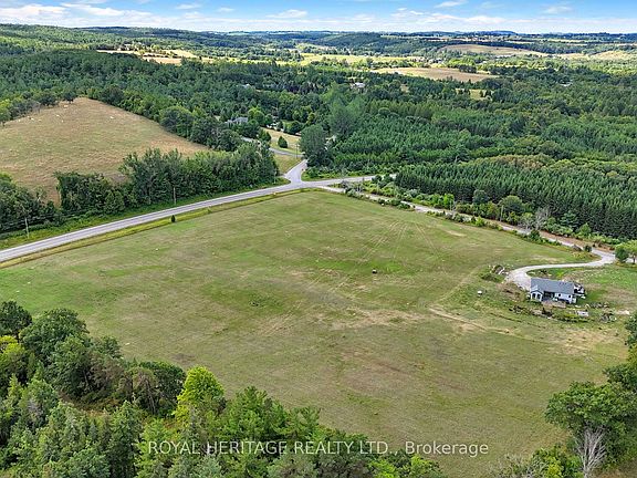 Click on video button to watch fabulous drone video. With frontage on Goose Creek Rd and Rice Lake Scenic Drive, this is a rare 17.44-acre parcel offering panoramic views of Rice Lake and the rolling Northumberland countryside. This exceptional property combines accessibility with privacy. Goose Creek Road is a small enclave of private upscale homes. A large portion of the land has been professionally cleared and prepped for your dream build, complete with a temporary construction entrance, site plan, septic and entry permits already in place. Drafted bungalow plans available as well. Approximately 12 acres are currently rented to a local farmer for hay, ensuring low-maintenance land stewardship while you plan your future home. Mature pines and a gently elevated building site ensure year-round scenic vistas and a tranquil, private setting ideal for peaceful country living. Just 15 minutes north of Cobourg and an easy commute to the GTA or Peterborough, this is a big, beautiful piece of land where you can create the lifestyle you've always imagined. Be sure to watch the spectacular drone video to fully appreciate this one-of-a-kind offering.