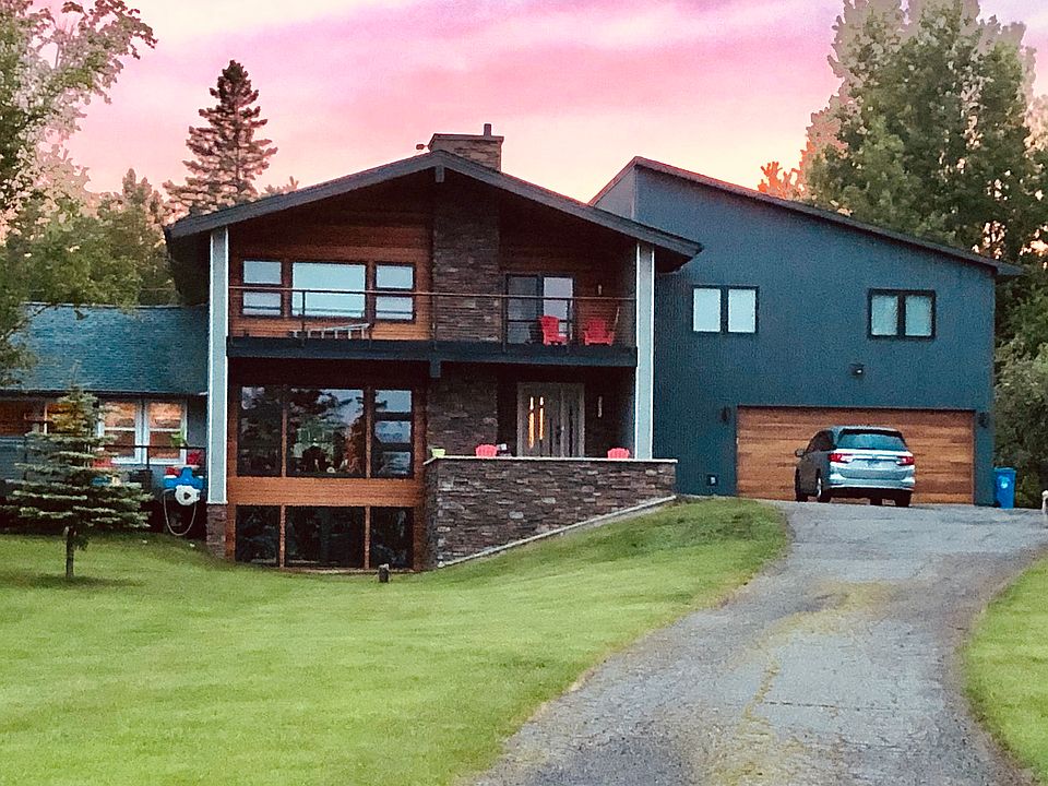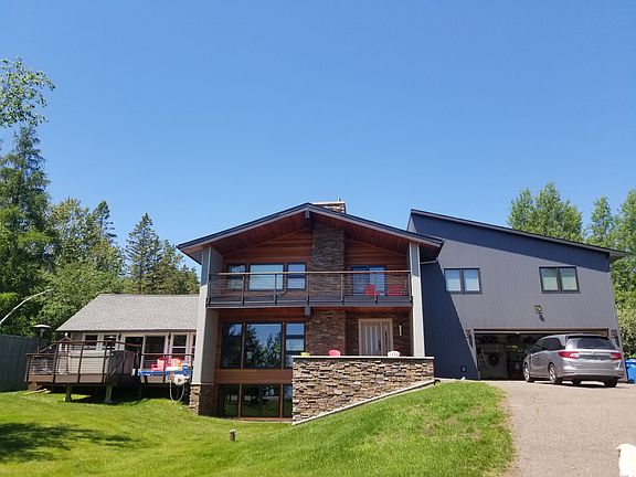 Dream house overlooking the magnificent shores of Lake Superior. A pebble beach awaits you directly in front of your house as you walk across scenic 61 to the water. Perfect for swimming, agate hunting, launching kayaks, paddle boards or just watching the sunrise with the soothing sounds of waves crashing. This modern home features 5 bedrooms on the same floor, 3 full baths and one 1/2 bath. As you enter you walk over a Lake Superior concrete inlay in your newly renovated dry stacked stone and concrete outdoor entry way. The modern wrap around stairs and entry greet you and opens up to the spacious floor plan. Main floor features 1/2 bath, renovated kitchen with new tile, backsplash, Maytag stainless steel appliances gas range , paint, breakfast nook, formal dining room, and 2 living areas overlooking Lake Superior with immaculate maple hardwood floors. The larger living area is perfect for entertaining guests as you can walk thru your sliding glass doors out to the recently renovated deck with modern deck tiles, cable railing with tigerwood , and hot tub. You can soak in the hot tub as you hear the waves crashing on the shore. A new pellet stove was installed to keep you warm in the winter and a Haiku ceiling fan to cool in the summer. As you go upstairs you will find 5 bedrooms, 3 full baths, and laundry area. A recent addition converted this home from a 3 bedroom 2.5 bathroom home to a 5 bedroom 3.5 bathroom home. The modern addition includes wood flooring throughout, 2 bedrooms with amazing Lake Superior views, new washer and dryer placed on upstairs level for convenience, storage throughout with Elfa closets, and an upgraded beautiful bathroom. From the addition a hallway leads you to the 3 other bedrooms. The master suite offers a floor to ceiling fireplace, office nook, master bathroom, new large andersen windows and sliding glass door out to your private balcony overlooking the lake. The large tiled basement is open floor plan with a large woodworking heated shop, furnace room, storage room, and two wonderful open spaces for additional family rooms/bedrooms. Heated and sheetrockd attached garage with spray foam insulation. This home is just .4 miles from the McQuade Safe Harbor and just 15 min. to town. Convenient location to Duluth town amenities yet far enough away to enjoy the privacy and serenity of the North shore. New Andersen windows, Nichiha fiber cement siding, clear cedar siding, Bridger steel siding, soffit, fascia, oversized seamless gutters, garage door with smart opener, deck and balcony deck tiles, cable and tigerwood railings, 2 mini split air conditioners (one in master BR and one in addition), boiler, hybrid water heater, 25 year Hague water softener, ceiling tiles in basement, stone and concrete entry, pellet stove, high speed fiber optic internet and invisible perimeter dog fence. Also roof new as of 2012.