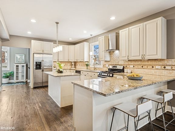Stunning 5-Bedroom Home in Portage Park on an extra wide lot! Completely renovated down to the studs, this 5-bedroom, 3-bathroom home blends high-end finishes with thoughtful design and modern convenience. This meticulously maintained, architect-designed, architect-owned home that is drenched in sunlight from 3 unobstructed sides will have you enjoying space both inside and out. Step inside to discover an open-concept layout that was designed for seamless living and entertaining. The custom kitchen is a chef's dream, featuring granite countertops, custom grade cabinetry, under cabinet lighting, huge island, high end drawer microwave and a pantry with Elfa shelving. Also on the main floor, a bedroom with french doors, huge mudroom and full bathroom. On the 2nd floor, the primary suite is a true retreat, boasting two spacious walk-in closets and a spa-like bathroom complete with dual sinks, a separate jacuzzi tub, and a walk-in shower. Rounding out the 2nd floor are 3 more bedrooms all with excellent closet space and tons of natural light, 2nd floor laundry and a spacious bathroom with linen closet and dual sinks. All bedrooms are wired for data! Additional highlights include a fenced-in yard, high capacity gutters with gutter guards, 2-car garage off the alley with additional street parking available, 200-amp electrical service, fully upgraded plumbing, whole house humidifier, and easy access to 90/94, walking distance to metro and CTA Blue Line as well as dining and shopping! With over 2600 square feet of living space above grade, the unfinished dry basement, with drain tiles, offers excellent storage or opportunity to create additional living space.