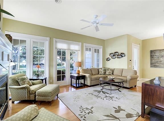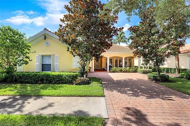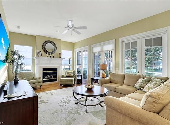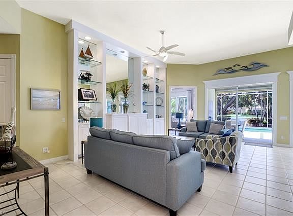 This elegant 4 bedroom, 4 bath, home is furnished, and includes a heated pool and an open kitchen with newer stainless steel appliances. Southern exposure with a water view, plus a living room with a "wall of windows" provide a light and bright environment. Tile and wood flooring eases interior maintenance, while electric and accordion shutters provide storm protection, if needed, in just a few minutes. Located in North Naples just minutes from Naples beaches where free parking is readily available, it is also close to numerous dining and shopping destinations. Island Walk provides miles of protected walking and bicycling trails, plus tennis, bocce, new pickle ball courts, and lap and resort-style pools. The town center houses a state-of-the art fitness center, a post office, and an on-site gas station for your convenience. This home includes a one year home warranty for the buyer. Functional updates include the roof, hot water heater and kitchen appliances which are only 2 years old, and the A/C system is only 4 years old. This home is located on a street with no through traffic, next to a cul-de-sac, and with convenient access to entry and exit points from this gated community.