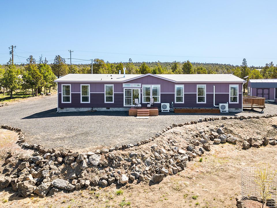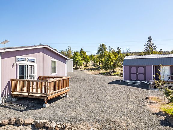 Discover your dream retreat in Central Oregon! This beautifully updated 4-bedroom, 2-bath, 2,100 sq ft home sits on 1.82 acres and offers breathtaking panoramic views of the Cascades. Built for comfort and sustainability, it features a 14.175kW DC / 13.824kW AC solar system with an 11.52kW battery backup powering the well pump and shop. Inside, enjoy an open-concept layout, a stunning primary suite with a 6' Jacuzzi tub and private deck access, and a chef's kitchen with granite counters, propane cooktop, and large island. Two mini-split A/C units ensure year-round comfort. Outside, find a 24' x 41' insulated shop with power, an EV-ready 240V plug, an additional powered shed, greenhouse, and animal enclosures for homesteading. Mature fruit trees, a swing set, sandbox, and 4K surveillance system add to the charm. With Starlink high-speed internet and direct access to outdoor adventures near BLM land.
