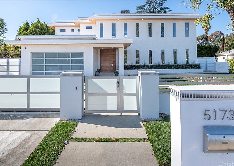 Newly constructed sleek 6 bedroom 8 bath Contemporary set behind gates in the desirable Hesby Oaks school district. A custom pivot door leads to an open concept floorplan enhanced by a strong architectural aesthetic with clean lines, high ceilings, designer finishes & walls of nesting doors creating an amazing indoor/outdoor flow. Designed for entertaining, the spacious interior is punctuated by an airy great room that features a dining area with glass enclosed wine cellar, a quaint living room, an oversized family room with in-wall glass fireplace, & a large gourmet kitchen with oversized center island, custom cabinetry with soft touch hardware, Thermador Appliance package & a built-in Miele coffee center. Additionally, there are two generously sized ensuite bedrooms, an ensuite maids/guest room & a powder room on the first floor. A stylized floating staircase leads to a secondary upstairs family room, two ensuite bedrooms & an enviable master suite with in wall fireplace, professionally organized walk-in closet, & spa quality bath with dramatic soaking tub, multi-jet shower, dual water closets & dressing area. A huge balcony with private bbq runs the back length of the house & overlooks the rear yard. Ideal for enjoying an active outdoor lifestyle, the landscaped grounds feature a sparkling pool/spa, lanai, glass firepit, sprawling patio, pool changing room/storage & outdoor ¾ bath. Additional amenities include a laundry/mud room, owned solar panel sys & great curb appeal.