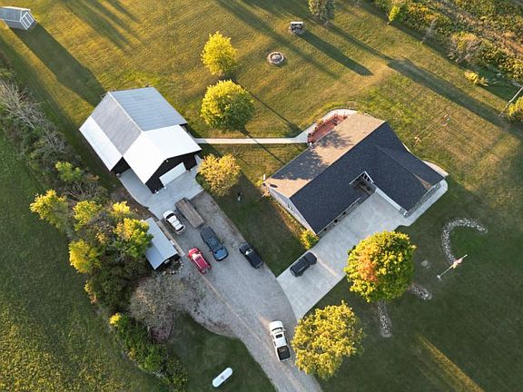 This 4 bedroom country home on 10 acres is ready to move into, and has been remodeled and meticulously cared for. The knotty hickory cabinets with a custom copper sink and quartz counters leave a great space for cooking & entertaining. All the kitchen appliances stay with the house!! The floors throughout the main living area are Armstrong laminate anti-scratch durable floors which are very pet &children friendly. The den features a Browning 58 gun built in fireproof safe that also stays with the home. There are too many features to mention and a bonus feature sheet is available upon request! Check out the virtual tour highlighting the aerial views! The 50x68 pole barn is fully insulated, heated, cooled, concrete floors throughout, has water & propane ran to it along with floor drains. The large front door is 12' high and has 2 lean-to's for additional parking & storage. There is an attic space above the barn for mechanicals and extra storage. There are 2 Generac generators (1 for home and 1 for barn) that stay with the sale. For additional storage space, there are 2more sheds on the property, and if you are ready for a garden there is a large garden area along with a beautiful greenhouse complete with water, shelves and automatic roof-vents. This set-up is incredible! Schedule your showing soon, this beautiful house, barn & property won't last long.