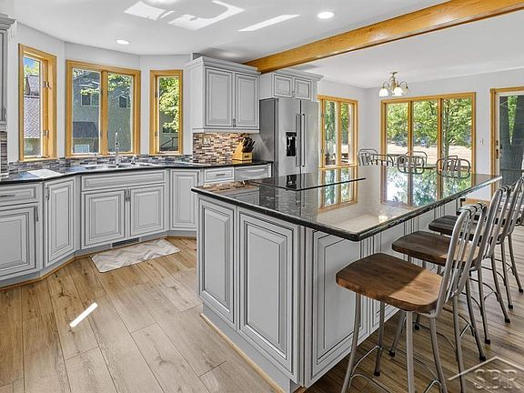 Large brick fireplaceLarge islandExpansive yardSpacious backyardStunning lake viewsLarge deckExtra-large treed lot