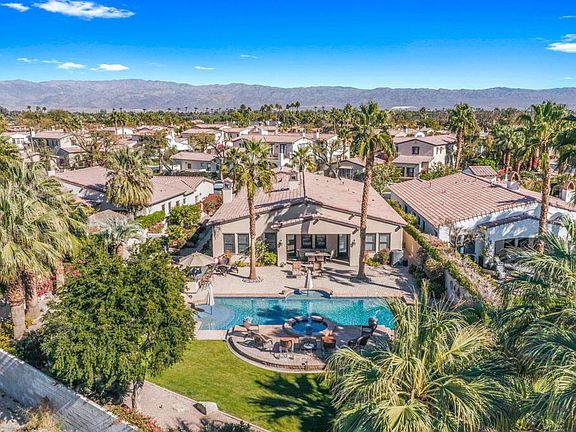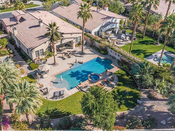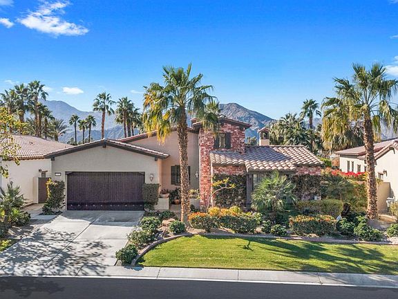 You just found a beauty ! Come home to La Cantera, the quaint gated Santa Barbara style enclave of award winning architect Frank Stoltz. This estate embodies the seamless indoor/outdoor California lifestyle. Multiple outdoor entertaining areas with over 3000 sq ft of pavers, embraced by lavish landscaping, OUTSTANDING Mountain views and an amazing salt water pool, with two tanning decks, two fountains and a raised spa. Built in BBQ and Firepit put the icing on this remarkable ,resort- like outdoor atmosphere. Moving inside this 2849 sq ft beauty , you are graced with a private courtyard entry that features a private guest house (casita) and stunning use of stone and pathways. This home enjoys 3 bedrooms PLUS custom office and 3.5 baths. Both formal and informal living rooms, eat in kitchen and formal dining area. High end furnishings and masterful custom paint by Danny Berg.The kitchen is a chefs dream - new Subzero fridge, Thermador appliances, new Jenair Microwave, slab granite all open to living room and pool side. Very well maintained home with high-efficiency Marvin Windows, 3 year old high efficiency Trane AC/Heating units, built in sound system, 2 fireplaces, tankless water heater, new pool equipment, new garage door motor, new entry gate, and many other improvements too numerous to mention. With a low HOA fee and Championship Arnold Palmer Golf course at Silver Rock only 3 minutes away - it just doesn't get any better.The location is outstanding!Call