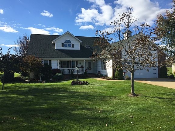 Two story home located on Pine Veiw Course. Finished basement with fourth bedroom, family room, office and lots of storage. 1/2 Acre additional landscape-lot. Natural gas fireplace in 22 ft high ceiling great room. Main floor Master bedroom with onsuite bathroom with jacuzzi tub and walk-in closet sliders in master bedroom that go out to large deck. Laundry room close to Master bedroom Kitchen with beautiful hickory cabinets New granite counters sink and fixtures Dishwasher, microwave, refrigerator and range included. Open concept eat in kitchen and spacious dining room with hardwood floors and also hardwood floors in half bath, laundry room, and foyer. Sliders open off dining room to spacious deck 2nd story overlooks great room and features 2 spacious bedrooms and a private full bathroom with ceramic floor. Sky lights in foyer and great room which lends itself to great light. Beautiful landscaping with mature trees, flower beds with many perennials that inhance the beds and blue spruce trees. Large finished 2 car garage.
