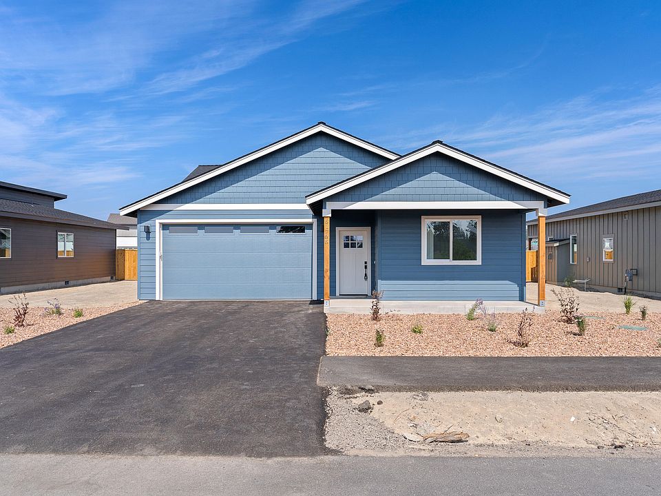 Exceptional new construction single level home with mini split A/C! Discover this stunning new build with versatility—choose between 3 bedrooms and an office or use the office as a 4th bedroom. Enjoy 2 full bathrooms, each with dual sinks, and a tiled shower in the ensuite. A modern kitchen awaits with stainless steel appliances including a refrigerator, quartz countertops, a pantry, and a butcher block kitchen island. The open floor plan features a gas fireplace with a wood mantle, kitchen desk, and vaulted ceilings. The back features a covered patio stubbed for natural gas and a fenced backyard. Additional amenities include a two-car garage, fiber optics cable available at street, and an easily maintained front yard. Located close to schools and healthcare, and just steps from over 5 acres of HOA park space connected by walking paths. Don't miss out on this fantastic home!