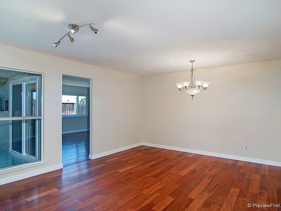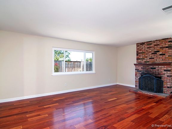 Be welcomed by a charming entry through freshly landscaped grassy yard with salvia-lined walkway and dry creek feature. The kitchen boasts a new refrigerator, oven, and dishwasher and has a separate pantry and track lighting. The combination living room and dining room, as well as the family room, has durable engineered hardwood flooring. The large family room with gas fireplace is perfect for family gatherings large or small.