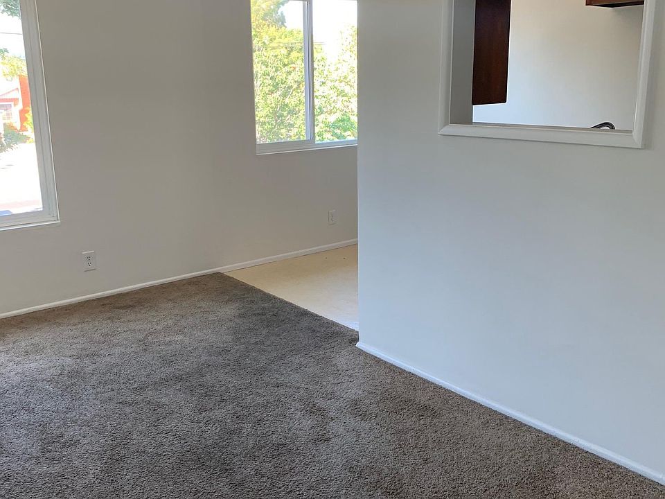 Bathroom has new bathroom sink, vanity, toilet, medicine cabinet and newly reglazed tub. Newer dual pane vinyl windows throughout, and off street parking under carport. 1 year lease, water and trash paid by landlord