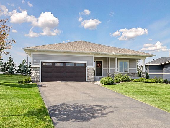 Welcome to effortless elegance and functional design in this beautifully crafted home by Cardinal Homebuilders. Designed with comfort and convenience in mind, this residence offers a sought-after, main level living layout that blends sophisticated style with everyday ease. Step through the welcoming foyer into a versatile front bedroom or office, paired with an adjacent powder room featuring textured wallpaper for a stylish touch. From there, a spacious, wide-open living area offers a seamless blend of kitchen, dining, and family room spaces, perfect for ease of living and entertaining. In the dazzling kitchen, Cambria countertops gleam amongst a trendy tile backsplash, white cabinetry, and stainless steel appliances, while the large center island provides ample workspace and a walk-in pantry offers that desired extra storage. The informal dining area flows into the cozy family room, where a floor-to-ceiling stone surround gas fireplace is flanked by rich built-in cabinetry, creating a warm and inviting focal point. Retreat to the main-level Owner’s suite and find a peaceful haven with its private ¾ en suite with tile surround shower and a spacious walk-in closet and bonus shoe closet, both with handy organization systems. Plus, the laundry/mudroom off the attached two-car attached garage adds functionality with thoughtful extras and ample space. As you make your way to the finished lower level, you’ll be pleased to find an expansive family/recreation room, complete with another stone surround gas fireplace, built-ins, and an impressive wet bar that’s ideal for hosting game and movie nights. In addition, two oversized bedrooms, each with walk-in closets, share a full bath and provide flexible space for guests, a home gym, office or hobby room; and don’t miss the generous storage space throughout. Outside, enjoy serene outdoor living on the covered front porch or the maintenance-free balcony deck in a backyard framed by mature pine trees for added privacy, not to mention an ideal location that’s just minutes from East Ridge High School, Woodbury amenities and major interstates.