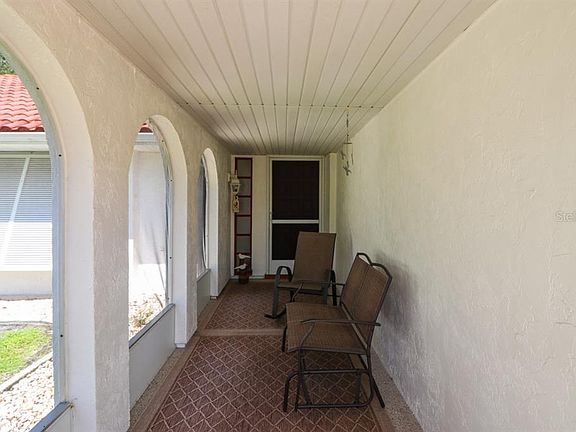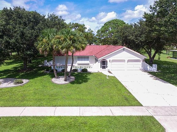 The FEATURES tell the story! This pristine 3 bed 2 bath estate home has been Lovingly cared for, and sits among mature shade oaks on a nearly half acre lot along a double cul de sac street. The community sports sidewalks, underground utilities with public water and sewer and is in the non-flood zone X. Construction is Concrete Block with barrel tiled roof. The home is neat-as-a-pin with open floor plan, split bedrooms, screened entryway, large kitchen with lots of cabinets and counter top space, double-door refrigerator and tiled backsplash. A formal dining room with crystal chandelier adjoins a large living room. A huge lanai runs along the back and overlooks an open greenspace shaded by mature oak trees. The lanai is accessed by sliders from the master bedroom and the cozy eat-in space in the kitchen. A large master bedroom has walk-in closet with a walk-in shower and plenty of room on the large vanity in the master bath. The hall bath separates bedrooms 2 & 3 and has a tub/shower combination. The Central Heat & Air are complimented by 12 ceiling fans throughout the home. A centrally located community in the heart of North Port convenient to shopping along Hwy 41 and city center along Sumter Blvd & Price. Half hour to beautiful Gulf of Mexico Beaches. Five min to I-75 where you can travel North & South to enjoy all our SW Fla area has to offer. Golf close by. Fishing & boating within easy access. Make your appointment today to see this gorgeous home.