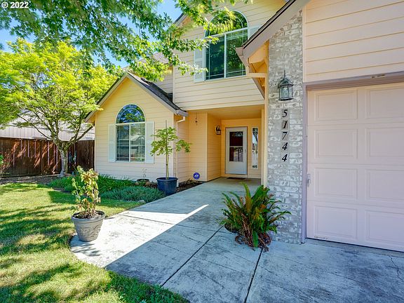 Fantastic home located on a quite street backed up to a green space! Desirable floor plan with primary bedroom on the main level. The suite features double sinks, coved ceiling & walk-in closet. Spacious living room with cozy fireplace. Good sized kitchen with eating area plus all appliances stay. Fenced back yard with entertaining sized patio, perfect for your summer BBQ. Great location with easy access to Highway 30, Scappoose schools and shopping!