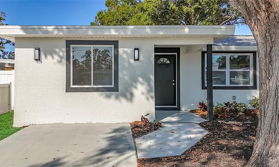One or more photo(s) has been virtually staged. Welcome to this beautifully fully remodeled 4-bedroom, 2-bathroom home, offering 1,296 sq ft of modern living space. Every major component has been updated for complete peace of mind: new roof (2022), new AC (2025), updated plumbing (2025), updated electrical (2025), and all-new windows and sliding glass door. Inside, the home features luxury vinyl plank flooring throughout, and a fully upgraded gas kitchen with gas range, gas oven, and gas water heater. The layout is open, bright, and highly functional, with a strong structural foundation and thoughtful design upgrades. The main entrance opens to a spacious living room seamlessly connected to the dining area and kitchen. Large sliding doors fill the space with natural light and lead to the backyard, creating the perfect indoor–outdoor flow. The bedroom distribution is ideal: • Three bedrooms and one full bathroom are located to the right side of the home. • The primary bedroom with private en-suite bathroom is located to the left, offering privacy and comfort. Outside, the property features mature shade trees, a fully paved concrete backyard perfect for entertaining or low-maintenance living, and a concrete driveway with direct access to the front door. This home stands out thanks to its complete renovation, the future owner will enjoy a property where everything feels brand new. Move-in ready and built to last!