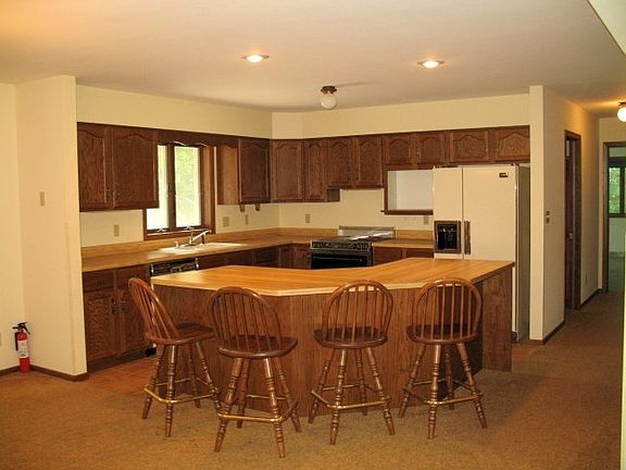 Relax and enjoy this spacious country ranch with three large bedrooms, two baths on a private, wooded 2.3 acres. Open concept kitchen and dining area. Lots of cabinets and counter space. Large living room with built-in bookshelves and fireplace. Sunny four seasons room to relax and enjoy country living. Deck and patio. Attached four car garage set up with a workshop plus an extra twenty four by thirty two garage for all your toys.