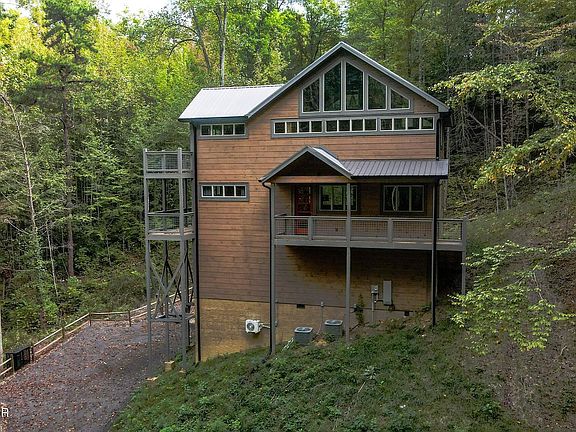 Each level of this well appointed mountain retreat opens up to large covered decks that accompany the cabins boundaries and corners. Entertaining outdoors is more pleasurable as you breath in the sweet aroma of the private, wooded boundaries of this property. While you are outdoors, enjoy the pleasure and warmth of the attractively appointed fireplace with a stone faced hearth.