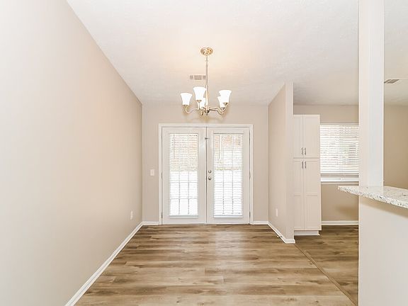 Don't miss out on this move-in-ready Sugar Hill rental home with three bedrooms and two bathrooms. The living room's door includes a stained glass panel for added style. Stainless steel appliances and stone-look countertops grace the kitchen. A modern chandelier brightens the dining room. Use the dining room's French doors for fast access to the fenced-in backyard. A vaulted ceiling with an overhead fan and a large window with blinds promote comfort while you sleep in the main bedroom. The private bathroom includes a combined bathtub and shower and a white vanity with storage. Visit this smart rental home today.