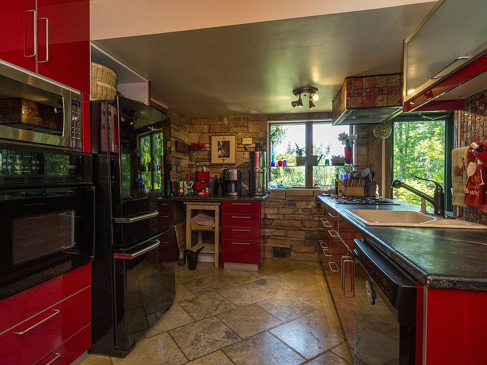 Nestled within 4+ fenced acres of your own professionally planted and landscaped, park-like yard of water features and perennials, this unique home glows! Welcome the sunrise over Lake Superior from your master bedrooms private balcony, before cooking breakfast in your custom designed kitchen with warm soapstone counter tops, stone accents, and bright windows. Enjoy afternoon coffee in your bright dining room overlooking your patio and the birds bathing in one of the three water features tucked beneath the tree branches. Relax after a long day beside your kiva fireplace, grilling with friends outside the cottage (Stuga) beside the koi pond (they stay!), or tinkering in the greenhouse or your pole building with 16 doors and 220 amp service. Pick you perfect office spaces between the warm reading knock with built in bookshelves, the large formal office with a private entry ready for visitors or clients, or large quiet heated second floor office or bunk house space above the large two stall garage. If you are looking for a little project, the large basement work shop offers finish-able space for more bedrooms, another family room, anything! IT already offers an exercise or reading room, Sauna, storage, and modern glassed bath. This is one of those hidden gems whose pictures can not do it justice to it's amazing space, lovingly remodeled inside and out!