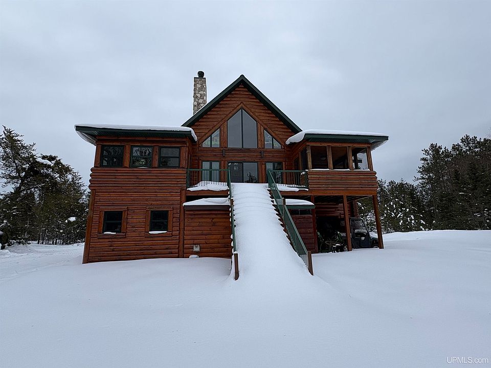 Very high quality log home on 41.6 acres with 294' of Rice Lake waterfront. This 2 bedroom home has 3 baths, sauna, garages for 5 vehicles, 2 work shops, hot tub, sauna and comes fully furnished. There are two 12'x12' insulated porches are on the second level, one has the hot tub and the other a propane gas grill hooked into the central propane system, perfect for entertaining. The owner feeds 40 deer every day in the winter along with numerous turkeys. The 30' long heated workshop on the ground level has doors on both ends to allow maintenance and storage of atv's and snowmobiles. This is an ideal home for the outdoor enthusiast with Rice Lake frontage for excellent inland lake fishing and is just 3 miles from a boat landing on Lake Superior for great lake trout, whitefish, and rainbow trout fishing on the reef just offshore! A 6,500 watt generator is included if the power goes out! The Owner will leave the home fully furnished with the exception of personal items. The utility room on the second floor contains the 1/2 bath. The 16 x 18' carpeted loft might make an excellent third bedroom. Lot 5 (has the home) is 33.2 acres, Parcel 73 is 4.12 acres, and Parcel 74 is 4.28 acres. See details and restrictive covenants in associated docs. Parcels 73 & 74 may be sold by a Buyer for fully wooded homesites! The Owner requests that all offers contain a letter of prequalification. All offers will be responded to within 72 hours of receipt. No offers will be considered that are contingent on the sale of another property!