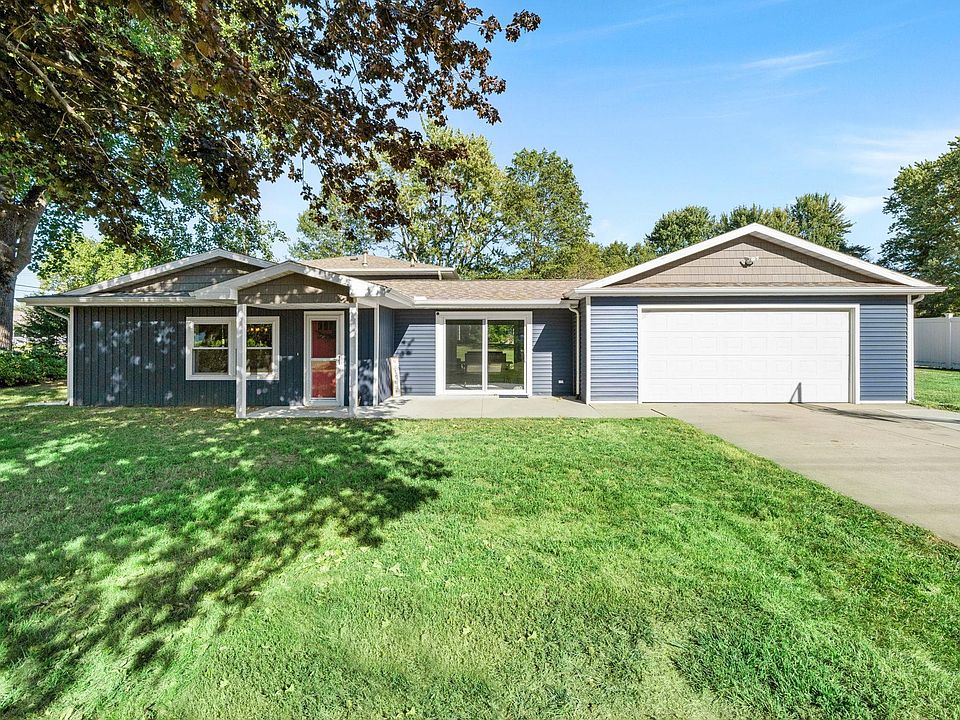 Welcome to this updated 4 bedroom 2 bath home on nearly 1 acre in the PHM School district. Tucked in a peaceful, wilderness-like setting, the front yard is lined with trees and lilac. The new double driveway features a basketball hoop and the backyard offers a 12x12 fire pit, 18x4 above ground pool, and space for activities like soccer, or volleyball and even a chicken coop! The breezeway has sliding doors and vaulted ceilings for serene views. Inside enjoy over 2400 sq. ft., including 800 sq. ft. of new space, a mud room, living room and kitchen/dining area. Lower level has a flex room that can be used as an office/den, a 400 sq ft primary suite with large walk-in closet. Upper level has 3 large bedroom with walk-in closets. New siding, plus new shingles, septic, sump pump and tankless water heater. Perfect for entertaining or family gatherings! Close to University of Notre Dame, Shopping, Toll Road, Fire Station, Park and Dining! Enjoy sidewalks for walks of bike riding and is ready to move in! Nice corner location!