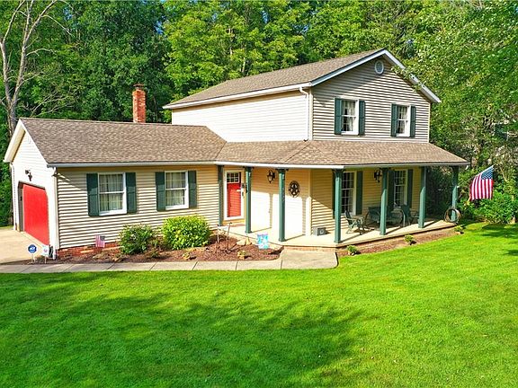 Quality built in 1991, the original owners are ready to pass along this three bedroom- three bath home to new owners! Very private setting on a five acre wooded lot in the township, with quick access to route 14/5/44/I-76, and West Branch State Park - great location! Nice eat-in kitchen with granite countertops, stainless steel appliances, maple butcher block and pantry... opens to the front family room. The living room to the rear of the main level has a wood burner and overlooks the back deck & woods. The main floor also offers a spacious foyer and half-bath w/ granite. The second floor master suite has vaulted ceilings, a private bathroom, a walk-in closet and separate closet for him. Two additional bedrooms and a full bath complete level two. Dry insulated basement with loads of storage. Many updates including; new roof 2014', new water softener/pressure tank/ hot water tank 2014'. 200 amp electric service, central A/C & whole house fan. Appliances included w/ newer maytag washer & dryer. Concrete drive and parking pad w/ two-car attached garage & oversized storage shed. Great home with beautiful wooded 5 acres! Schedule your showing today!