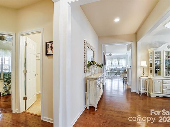 Discover your dream RANCH HOME! This beautiful 2 Bedroom, 2 Bath residence is situated in the sought-after Belair at Carolina Lakes in Indian Land. Meticulously maintained and tastefully decorated, this unique home boasts a Library with custom French Doors, conveniently located off the elegant Foyer or it could be converted into a 3rd bedroom.Craftsman Moldings enhance the charm throughout, featuring Wainscoting in both the Foyer and Dining Room, along with stunning Tray Ceilings in the Dining Room & Primary Suite. The recently updated kitchen shines with granite countertops, a stylish tiled backsplash, recessed lighting, freshly painted cabinets adorned with new hardware, and exquisite porcelain tile, creating a bright and inviting atmosphere. The spacious Great Room, highlighted by a marble fireplace, opens to a lovely sunroom that overlooks a thoughtfully designed private garden, complete with a custom brick paver patio. Enjoy your own tranquil oasis, surrounded by lush woods and featuring a mature specimen fig tree. Professional landscape lighting enhances the front area, providing both elegance and security. This prime location offers convenient access to plentiful shopping and top-rated schools. Additionally, a buyer incentive from TowneBank in Charlotte offers a 2-1 rate buy down for qualified buyers. Don’t miss out on this rare opportunity to experience the best!