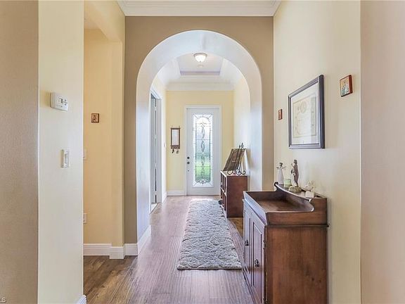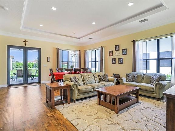 Caples Model 3 Bedroom PLUS Den, 3 Full Bathroom Hhome with loads of custom Wood Work Features. Custom-Built Bookcase covers entire wall in Family Room. Walking distance to Town Center from this preferred ROMA ST location. The Screened Extended Travertine Tiled Lanai Patio with Remote Controlled Lighting boasts an unobstructed view of the Lake/Canal. Inspiring and Amazing Sunrises. Large Custom Kitchen Features: Double Granite Countertops, 42" Wood Cabinets, Custom Lighting, a Built In secretary desk, Stainless Appliances, Breakfast Bar & Nook which opens to the Dining & Great Room. Custom Double Crown Molding in all first-floor common areas. 10' ceilings downstairs. 9' ceilings upstairs. Large 15'x 6' Primary BEDROOM ensuite features water views, walk-in closet with custom built-ins, a walk-in shower, large soaking tub, dual granite vanities, separate water closet. 2nd & 3rd bedrooms with Jack N Jill Bath. Downstairs full-bathroom features custom tile work, cultured marble counter top. Custom built-book shelves and desk in guest bedroom area which presently serves as a home office. Maple Ridge Community Grand Clubhouse with pool and tons of amenities is a must see.