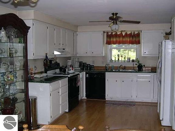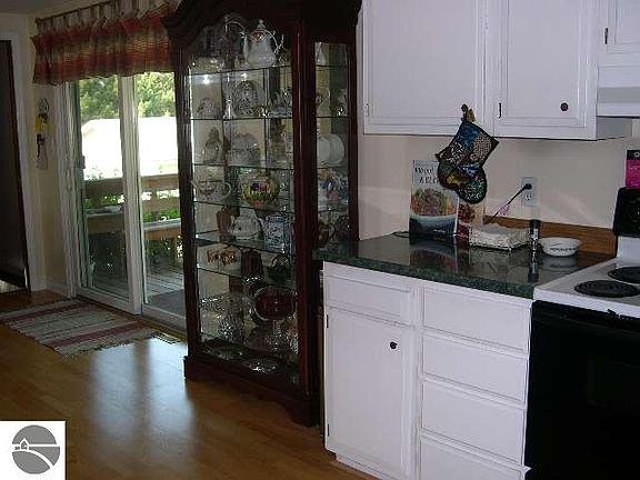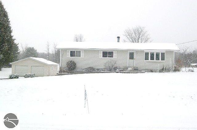 Situated on large gently rolling site, just 8 miles from downtown Traverse City, this home has had several upgrades including, bay window in living room, new laminate wood floors, updated kitchen and baths, large family room with gas woodstove and built in bookcase. Large covered deck overlooks backyard and perennial gardens. Two car detached garage with heated workshop