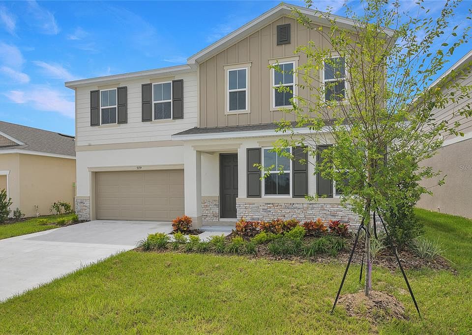 **Take advantage of special financing + Flex Funds on quick move-in homes**This beautiful Tourmaline floorplan will catch your eye with an upgraded "B" elevation featuring laytite stone and 8' exterior doorway. The kitchen features preeminent quartz countertops, upgraded 42" cabinets, and stainless GE dishwasher, microwave, and stovetop. Contemporary 7"x22" wood grain tile adorns the entry way, great room, kitchen, and bathrooms! You'll enjoy Florida living at it finest with double sliding doors which open to a covered lanai. Smart thermostat, deadbolt, garage opener, and video doorbell highlight this chic slate plan your sure to love! **Options may vary by community, so see your sales associate for details. These offers are available for select homes on a first-come, first-served basis.