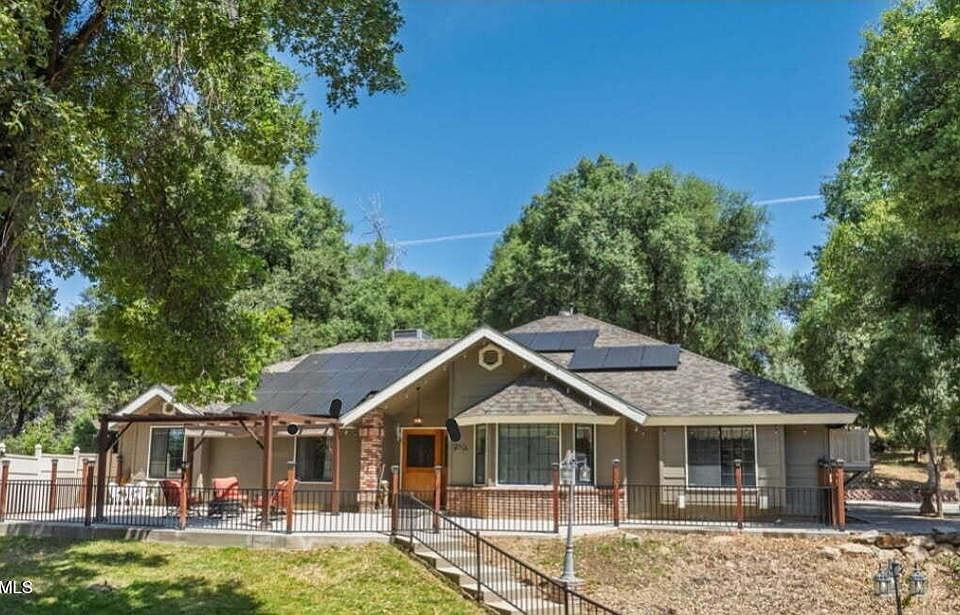 INVESTOR DREAM HOUSE, PRICE IMPROVEMENT AND SELLER WILLING TO CARRY, WOW! This spectacular Oakhurst Estate on over two acres is perfect for homeowners, investors & vacation rental income! Just three miles from iconic Bass Lake and a short drive to Yosemite National Park. This custom built single-story, 2,800 sq ft, 4 bedroom, 3 bathroom residence offers the perfect blend of comfort, versatility, and long-term value. Ideal as a primary home, multi-generational retreat or full-time vacation rental investment. The paid for solar system with back-up battery and private well add ongoing savings and self-sufficiency.Enjoy a fully updated kitchen with Cambria quartz countertops, custom cabinetry and modern appliances, complemented by engineered hardwood floors. Meticulously maintained, this home features 2 primary suites, one could easily be separated into a private guest quarter or income generating unit.Outdoor living is front and center with a chemical-free ozone swimming pool, 360 degree water slide, multiple patios, fruit trees and built-in BBQ. Also included is a 800 sq ft detached workshop (not included in the 2800 sq ft) with a paint booth and two levels of loft storage, covered RV parking with full hookups (including sewer disposal) plus a storage shed for tools or toys.This furnished property is ready for short-term vacation rentals or full time living, with outdoor amenities that make it a destination in itself!Whether you're looking to live, host, or invest, this Oakhurst gem checks all the boxes!