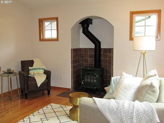 Affordable Quality. Desired Location. Charming craftsman inspired cottage features hardwood floors,tile entry,cherry cabs, claw-foot tub,walk-in tile shower,Jotul woodstove w/tile hearth,solid wood finish& Bed/Bath on entry level,& master suite upstairs. Highly sought location;easy walk to beach & downtown. Fully remodeled in 2002. Newly painted inside & out. Move in ready. Fenced yard,detached garage w/hobby space.