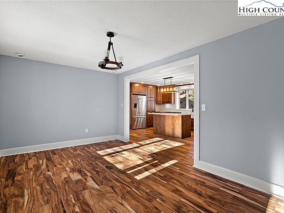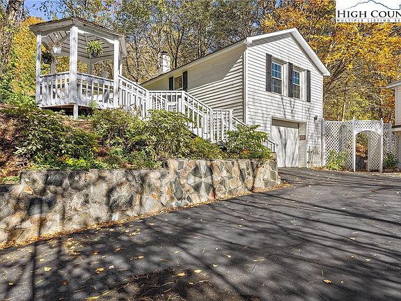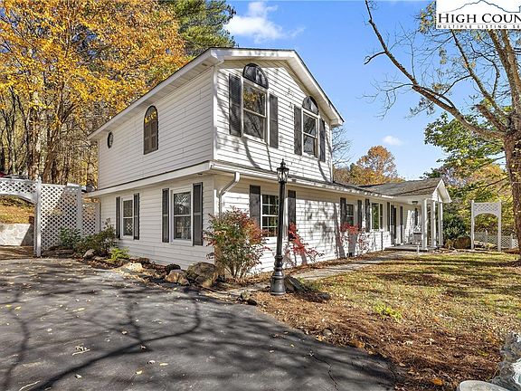 This charming farmhouse-style home has had tremendous improvements made to it over the past year including plumbing, electrical, and flooring. There have been lots of enhancements made that you can't see, but the ones you can see are incredible! You enter the home through a living or dining space that opens into an amazing modern kitchen. Custom cabinets, granite counters, and high-end appliances including a drawer microwave are ready to cook your delicious meals. The main level also offers three bedrooms, a large living space with abundant windows, your laundry room, and one and a half baths. Upstairs is your private primary bedroom with an attached bathroom. The detached garage offers a large space for parking, storage, and a workshop. Above this garage is an additional heated space, ready for you to utilize as you see fit! The property also includes numerous outbuildings and remarkably includes two extra lots for privacy and possible future building sites if desired. A brand-new HVAC system is also being installed. Many expensive structural upgrades were made to the house and to the detached garage to make sure they were in excellent condition. You'll notice that the home, while drastically updated, still has the charm of its original farmhouse style with features like the timeless black and white exterior and wormy chestnut interior trim work. The generous rear stone patio is a wonderful place for grilling, entertaining, and relaxing. Located just 10 minutes from downtown Boone, this quiet oasis is ideally located for easy access to town with all the benefits of living away from the hustle, bustle, and traffic.