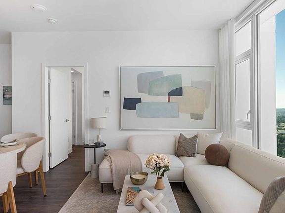 Experience elevated living in the largest 2-bedroom corner floorplan at Highpoint, Coquitlam's most luxurious new tower. This home features bedrooms on opposite sides of the living area for privacy, a full-sized kitchen with premium appliances, expansive windows that flood the space with natural light, and a thoughtful layout designed for comfort and storage. Highpoint homeowners enjoy exclusive access to a concierge, Fitness Centre, Social Lounge, and outdoor spaces with a kids play area, gardens, firepit seating, and BBQ. The jaw-dropping 51st storey SkyLounge is the crown jewel of amenity spaces, with 360 degree panoramic views from the highest point of all Coquitlam towers. Move in ready!