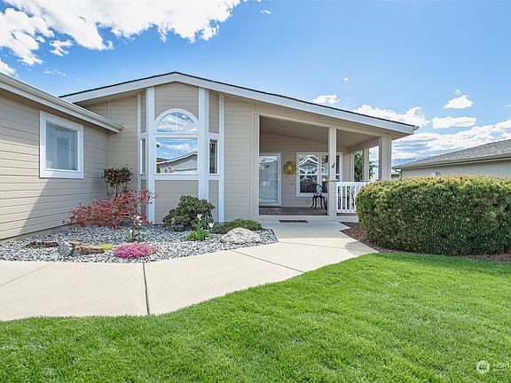 MUST SEE this delightful home! Located in THE place to retire in NCW. Sunrise East is a secure, gated, modern 55+ community renowned for it's luxury: Indoor pool, spa, fitness room, clubhouse, trail, horseshoe, putting green. RV + mini-storage available too! Entire park reflects high quality w/high-end Silvercrest homes on poured concrete foundations & manicured lots. 2,149' beauty boasts lg covered front porch, 3-CAR GARAGE w/SHOP SPACE(!!), vaulted + tray ceilings, primary suite w/5-piece attached bath, guest room w/walk-in closet, den w/craft-hobby area, full guest bath, built-in office, bay windows, covered private patio, private back yard for all to enjoy-AND-all appliances included! Clean inspection, move-in ready. Schedule your tour!