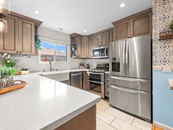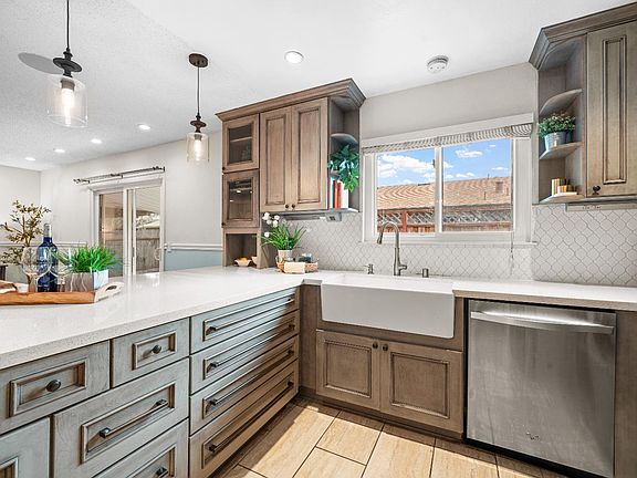 Single-level homeBeautiful farmhouse sinkStainless steel appliancesRemodeled kitchenLow-maintenance landscapingNewer dual-pane windows