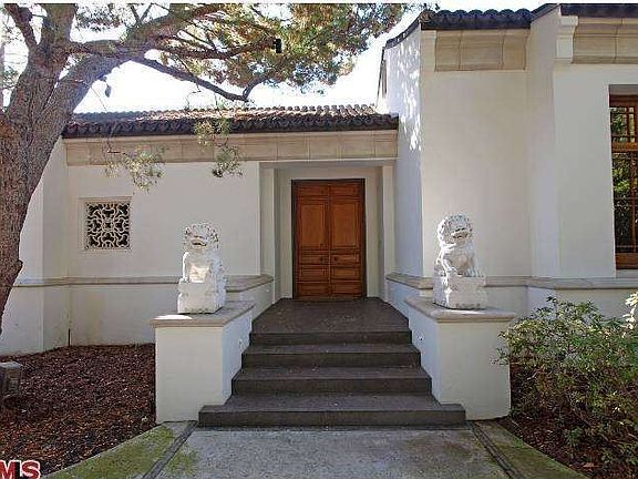 A magnificent oasis! Gated and private, this exquisite home features Asian inspired architecture and luxuriant landscaping to create a tranquil retreat. The voluminous entry highlights high barrel ceilings, and skylights. Public rooms are spacious and grand with beamed ceilings and windows and doors that open to the peaceful yard with bubbling stream, Japanese style koi pond, patios, pool area, tennis court, and thoughtful design. The home boasts 5 bedrooms and 8.5 bathrooms. Enjoy the beautiful wood detailing, wood floors, marble baths, and quality materials throughout. In addition, take advantage of the basement w/ extra storage, exercise room, and wine cellar, elevator, and three car garage plus private motor court. Allow yourself to be carried away by this elegant and whimsical property!