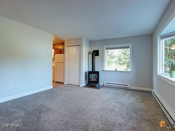 Bright corner unit, minutes from many trails, UAA & the hospitals! Unit has been continually updated and maintained though the years! New carpets & fresh paint in 2021! Complex features shared laundry & additional storage spaces for owners. Living room is open and spacious with bay window & gas stove which can heat entire unit if desired! Enjoy all the perks this condo has to offer!