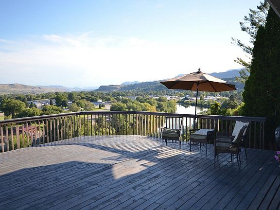 Omak - VIEW, VIEW, VIEW - Overlooking the Okanogan River & Valley - Home features 3 bedrooms/2 bathrooms, remodeled kitchen with SS appliances, dining room with unique ceiling, living room with fireplace & ceiling fan plus slider out to large covered & uncovered decks. Beautiful wood flooring. Unfinished basement great for extra storage. Heat Pump. Landscaped fenced yard with garden space & detached garage/shop. Washer/Dryer stay. Fiber Optic Cable Installed. $219,000 H-2402/MLS1024231