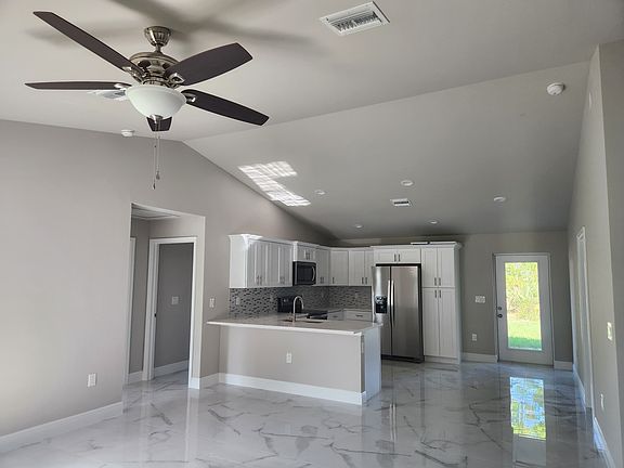 Property Information: Be the first to rent this beautifully constructed, brand-new, modern home in a quiet and sought-after area of Lehigh Acres, FL. Offering 3 bedrooms, 2 bathrooms, and a 1-car garage, this home provides 1,290 square feet of thoughtfully designed living space. The gourmet kitchen is a standout feature, complete with quartz countertops, stainless steel appliances, real wood shaker soft-close cabinets, a spacious pantry, and a generous breakfast bar ideal for casual dining and entertaining. The home also includes a washer and dryer for your convenience. Enjoy the peace of mind that comes with hurricane-impact windows and doors, while the glass rear door brings in natural light. Throughout the home, you'll find stylish designer porcelain tile flooring, high ceilings, and a large, open living room that creates a bright and welcoming atmosphere. A paver driveway adds to the home's curb appeal. Located close to schools, parks, golf courses, and other local amenities, this home offers both comfort and convenience in one of Lehigh Acres' most desirable neighborhoods.